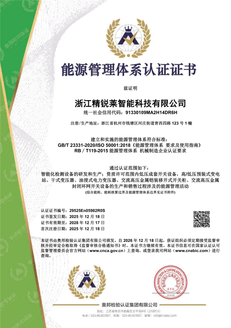 能源管理体系认证证书
